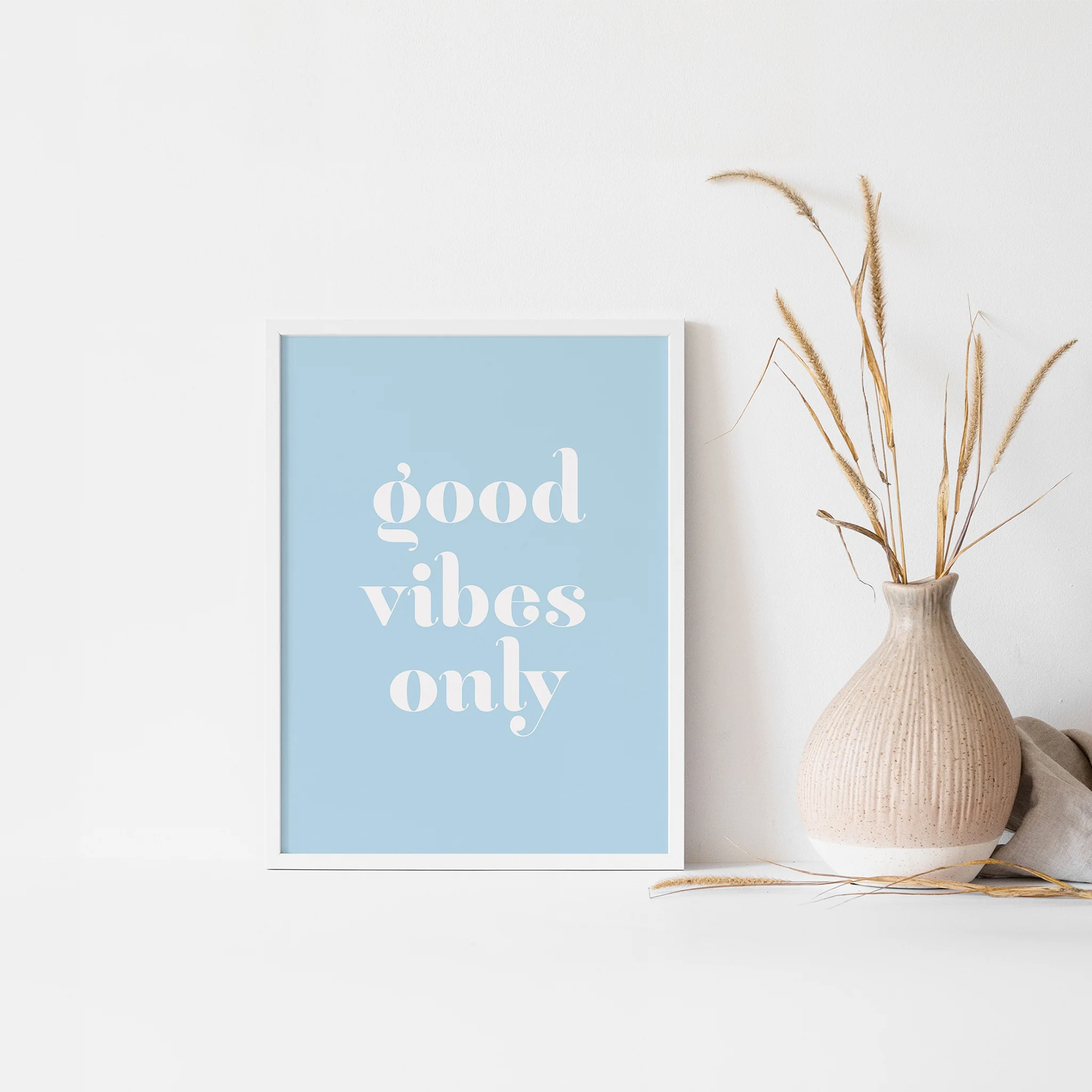 Three colors available to mix and match on your wall: Pink, Yellow, and Blue. Good vibes only wall poster or art card in multiple sizes and colors. Because it's all about the good vibes! And it really IS about vibration and energy. As the law of attraction states, the energy you put into the universe will dictate the world around you.